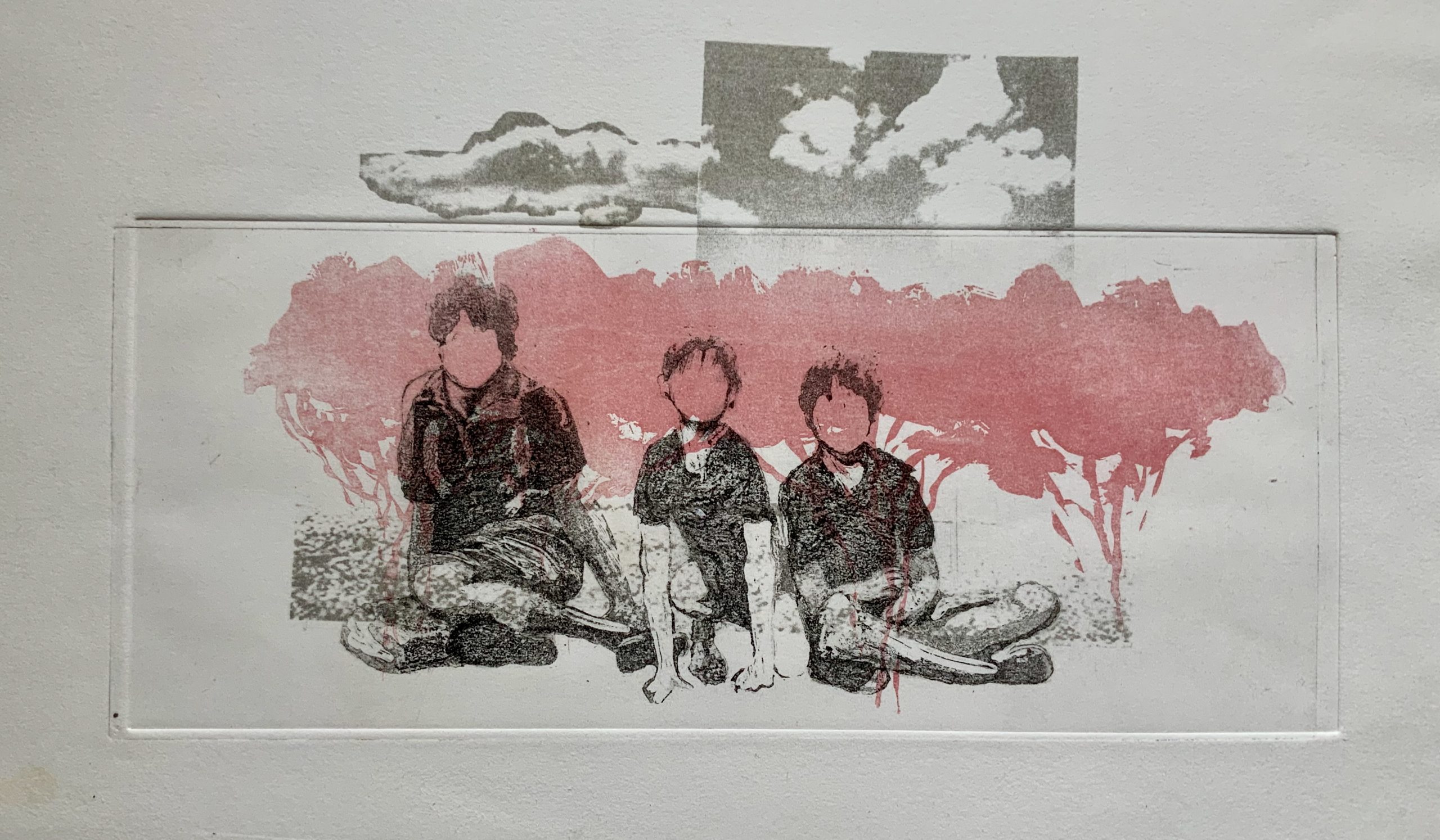 3 Enfants sur arbres rose